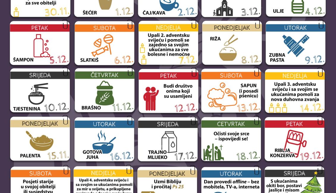 Od prve nedjelje došašća sve do Božića kalendar će voditi mlade i sve koji to žele kroz dane iščekivanja poticajima na konkretna djela milosrđa i ljubavi. U inicijativi mogu sudjelovati svi koji žele tako što će u svom domu pripremiti „kutiju dobrote“ te će svaki dan u nju staviti mali dar prema poticaju iz kalendara. Prijedlozi donacije će svakoga dana biti objavljivani na Facebook i Instagram profilu SHKM-a s ciljem da se do kraja došašća skupi paket koji će nekome uljepšati Božić.
