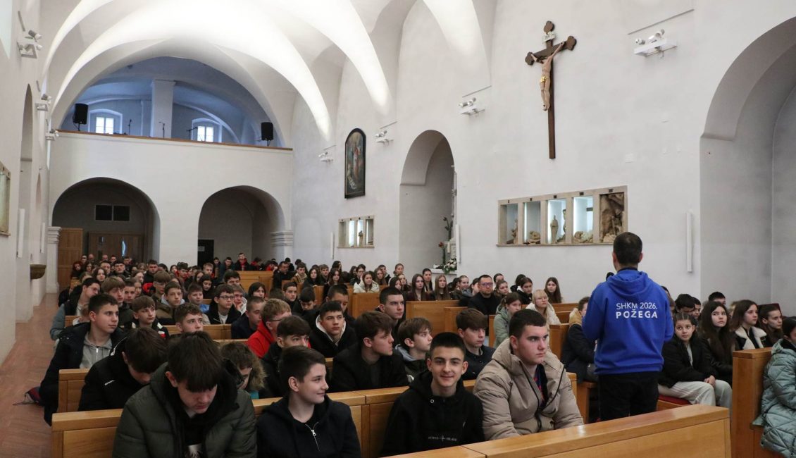 Program susreta započeo je u crkvi sv. Augustina Biskupa gdje je okupljene krizmanike i mlade predvođene svećenicima i vjeroučiteljima pozdravio domaći župnik Krunoslav Siroglavić uputivši im srdačnu riječ dobrodošlice. Nakon uvodne molitve povjerenik Požeške biskupije za pastoral mladih Marijan Pavelić održao je prigodnu katehezu. Na početku susreta mladima je predstavio razvoj i nastanak Susreta hrvatske katoličke mladeži koji se, počevši od 1996. godine, održava u različitim biskupijama te iz godine u godinu okuplja mlade u ozračju molitve, zajedništva i svjedočenja vjere. Posebnu je pozornost posvetio Križu SHKM-a, znaku koji prati put priprave domaćinske biskupije i nadahnjuje mlade na dublju molitvu i međusobno povezivanje. Prisjetio se i iskustava sudionika prijašnjih susreta koji su svjedočili o snažnim duhovnim iskustvima, novim prijateljstvima i obnovljenoj spremnosti na zauzetije življenje vjere, istaknuvši kako su ti događaji mnogima postali trajno vrelo radosti i nade.