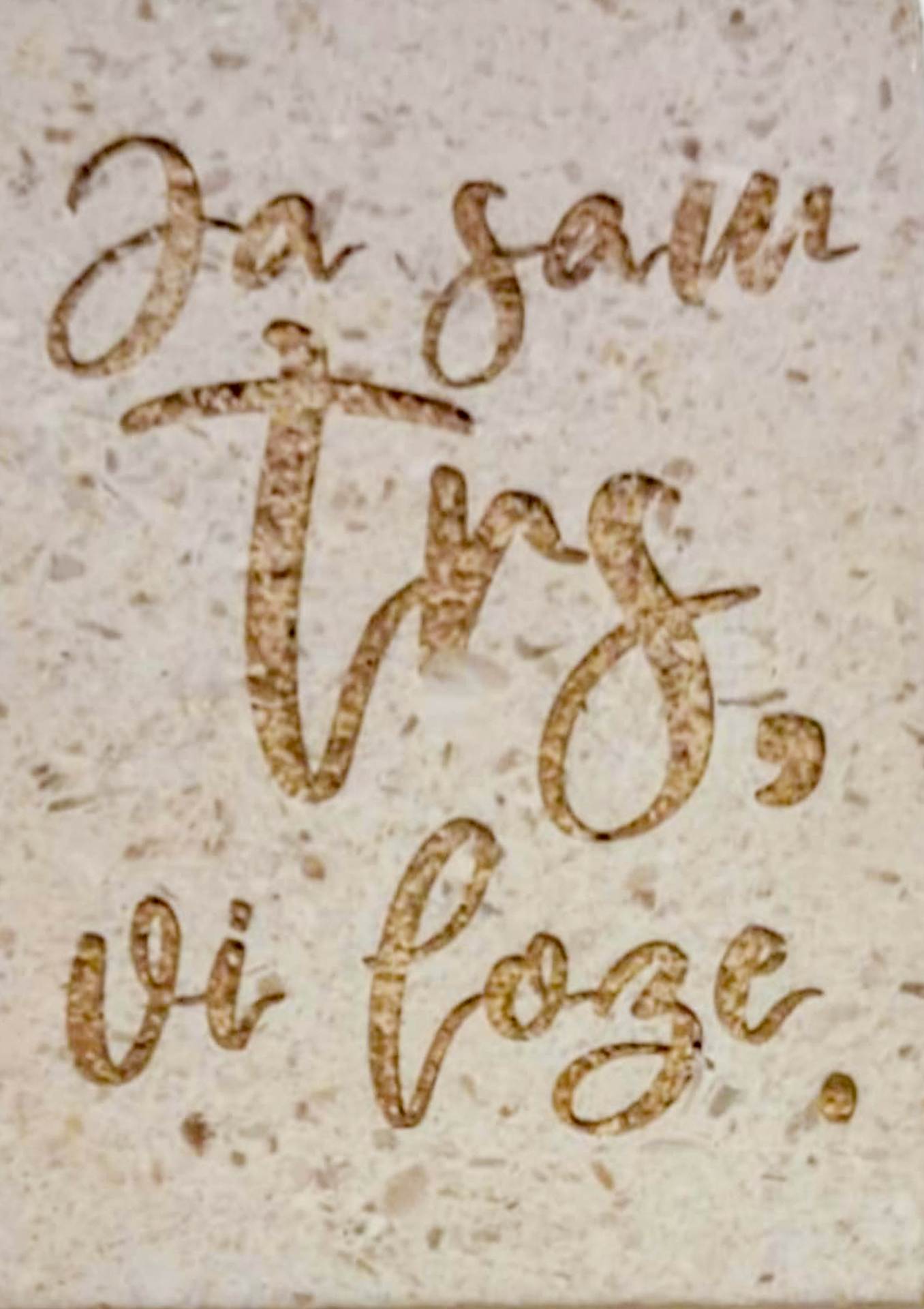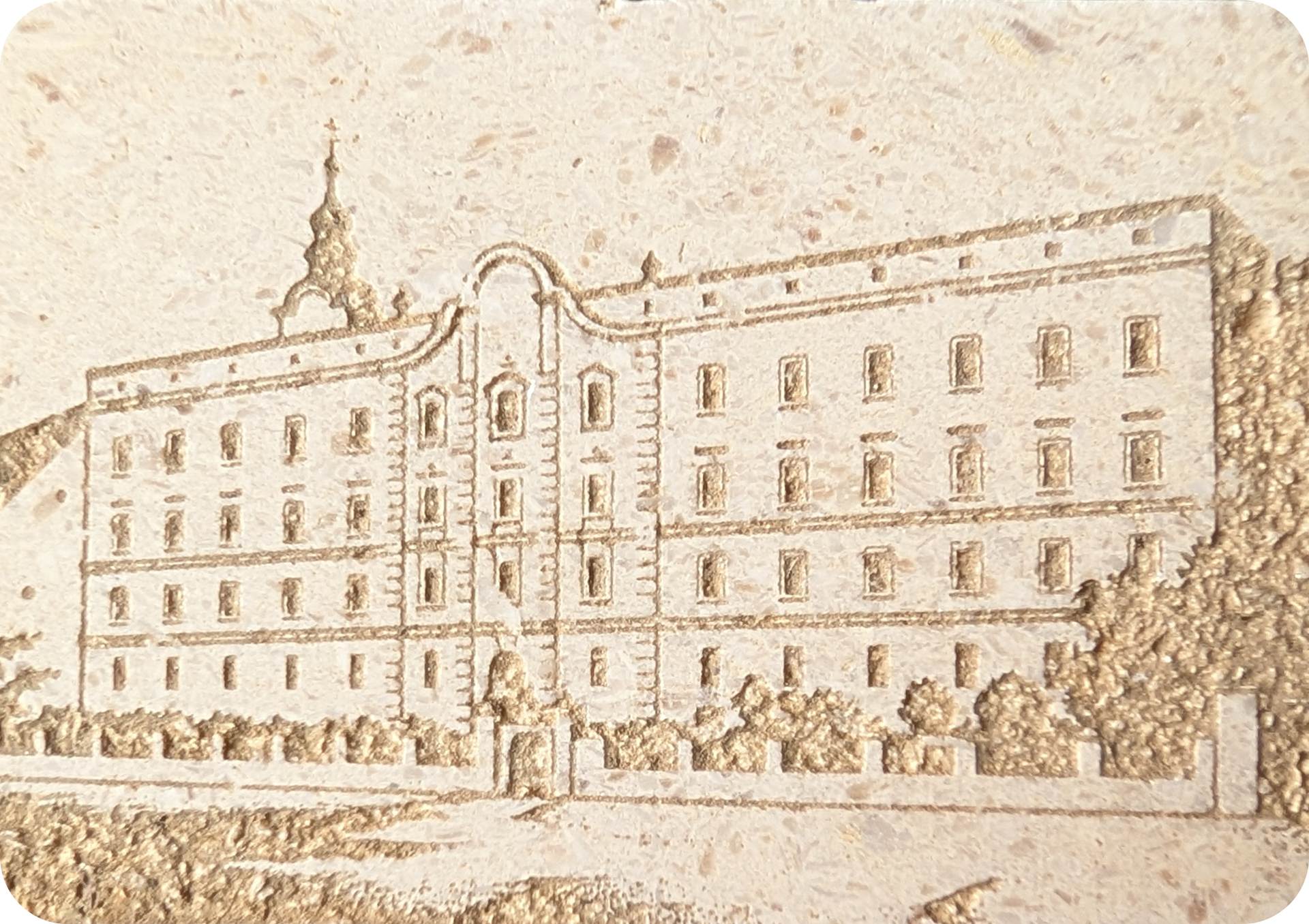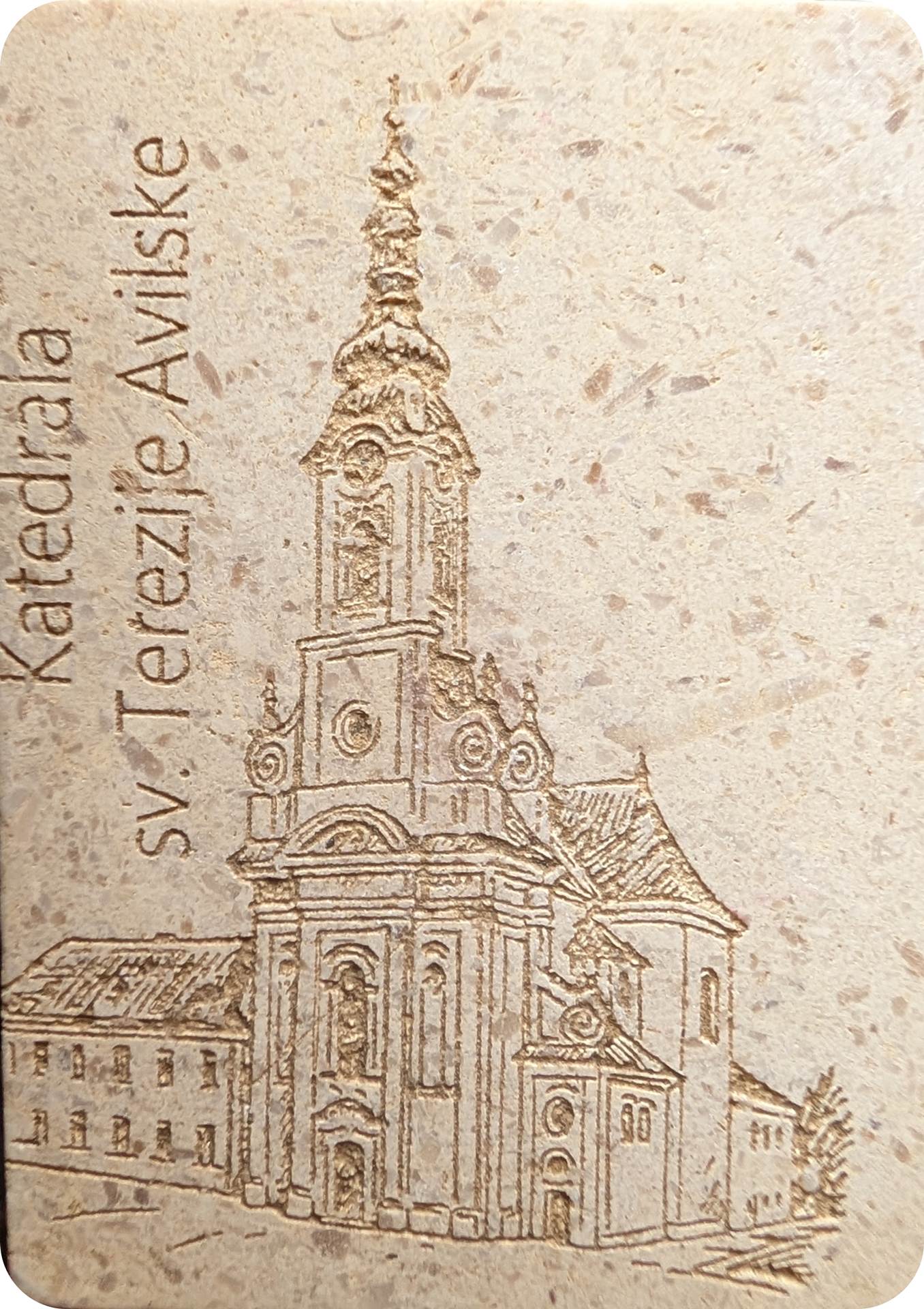 Izrađen od prirodnog rezanog kamena iz Republike Hrvatske, posebnom tehnikom graviranja s izraženim kontrastom, dodatno istaknutim prirodnom zemljom sa slavonskih polja. Svaki je primjerak unikatan, jer struktura i tekstura kamena nose vlastitu prirodnu posebnost – trajni podsjetnik na Susret i zajedništvo mladih.