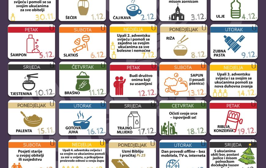 Organizacijski odbor Susreta hrvatske katoličke mladeži u Požeškoj biskupiji u suradnji s biskupijskim Caritasom pokreće inicijativu „SHKM adventski kalenDAR dobrote“, koja će započeti na prvu nedjelju došašća, 30. studenog 2025. godine. Od prve nedjelje došašća sve do Božića kalendar će...